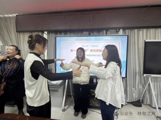 为进一步深化心理疏导效果,讲座设置了“三人同组听‘乌鸦’抓手指”“运气球”“口令撕纸”等多个趣味互动游戏。在游戏过程中,干部们放下工作疲惫,全身心投入其中,欢声笑语不断。赵红老师结合游戏场景,深入浅出地为干部们讲解如何正确看待工作压力、如何提升团队协作意识、如何从多维度分析和解决工作中的难题,引导干部们在互动中学会调节情绪,在协作中感受团队温暖,有效缓解了长期以来积累的身心压力。