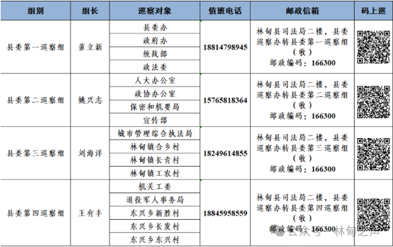 十七届县委第九轮巡察进驻一览表